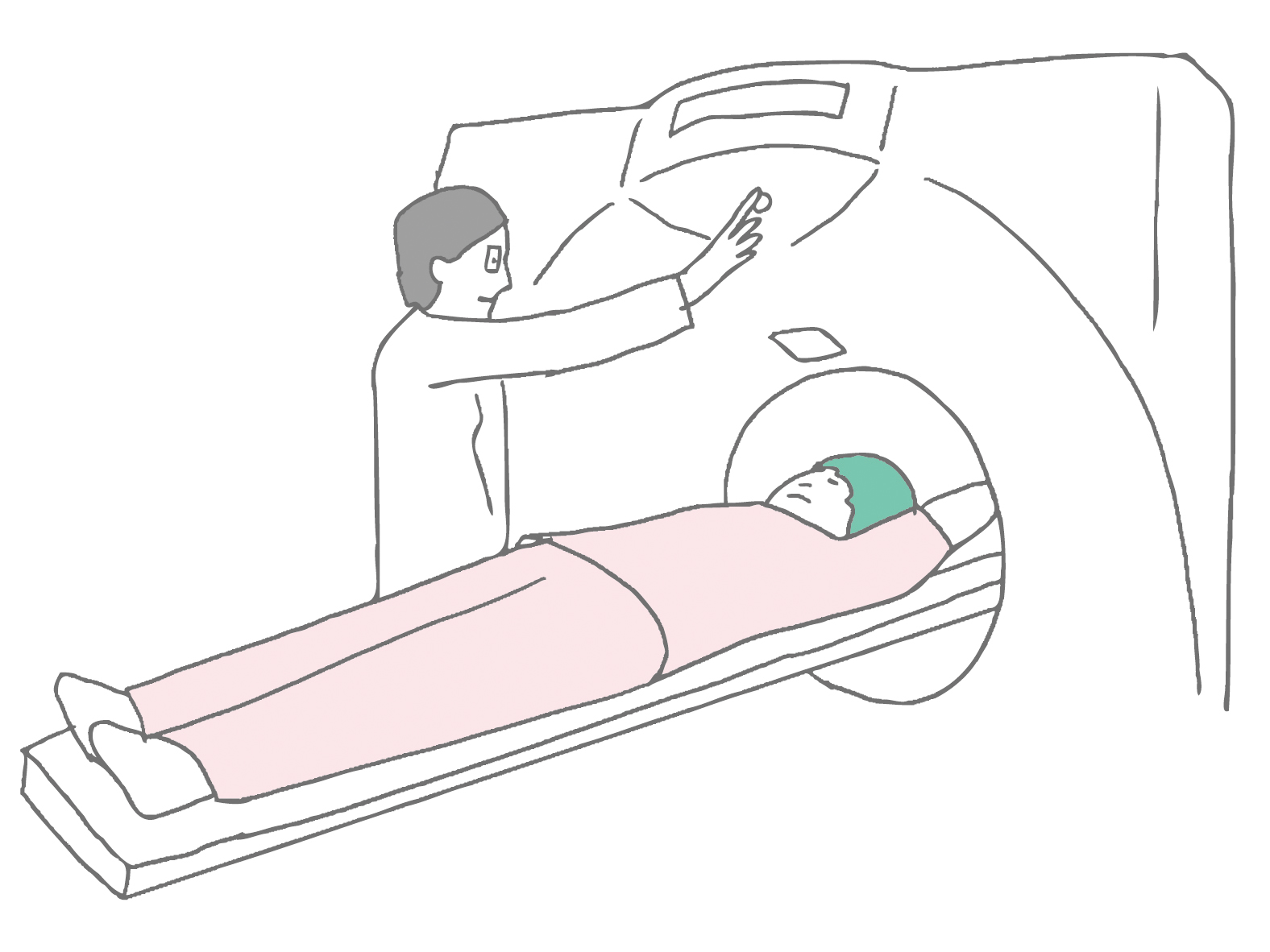 CTスキャナーと呼ばれるドーナツ型の機械の中を移動するテーブルの上に横たわっていただいた上で、体のさまざまな角度から複数のX線画像を撮影し、コンピュータで合成して体の内部構造の詳細な3D画像を作成します。